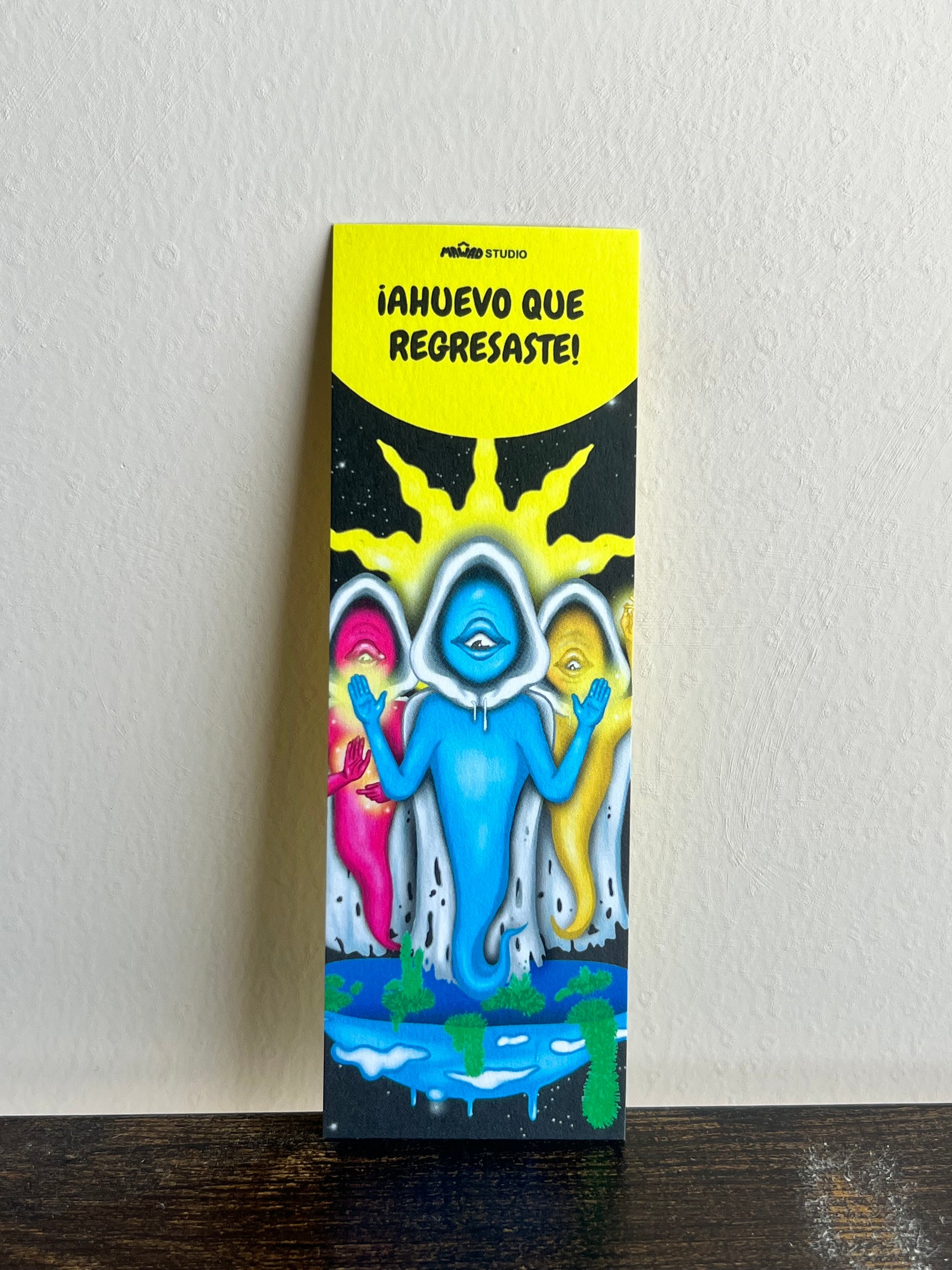 Al frente la obra, al reverso color amarillo y logotipo.